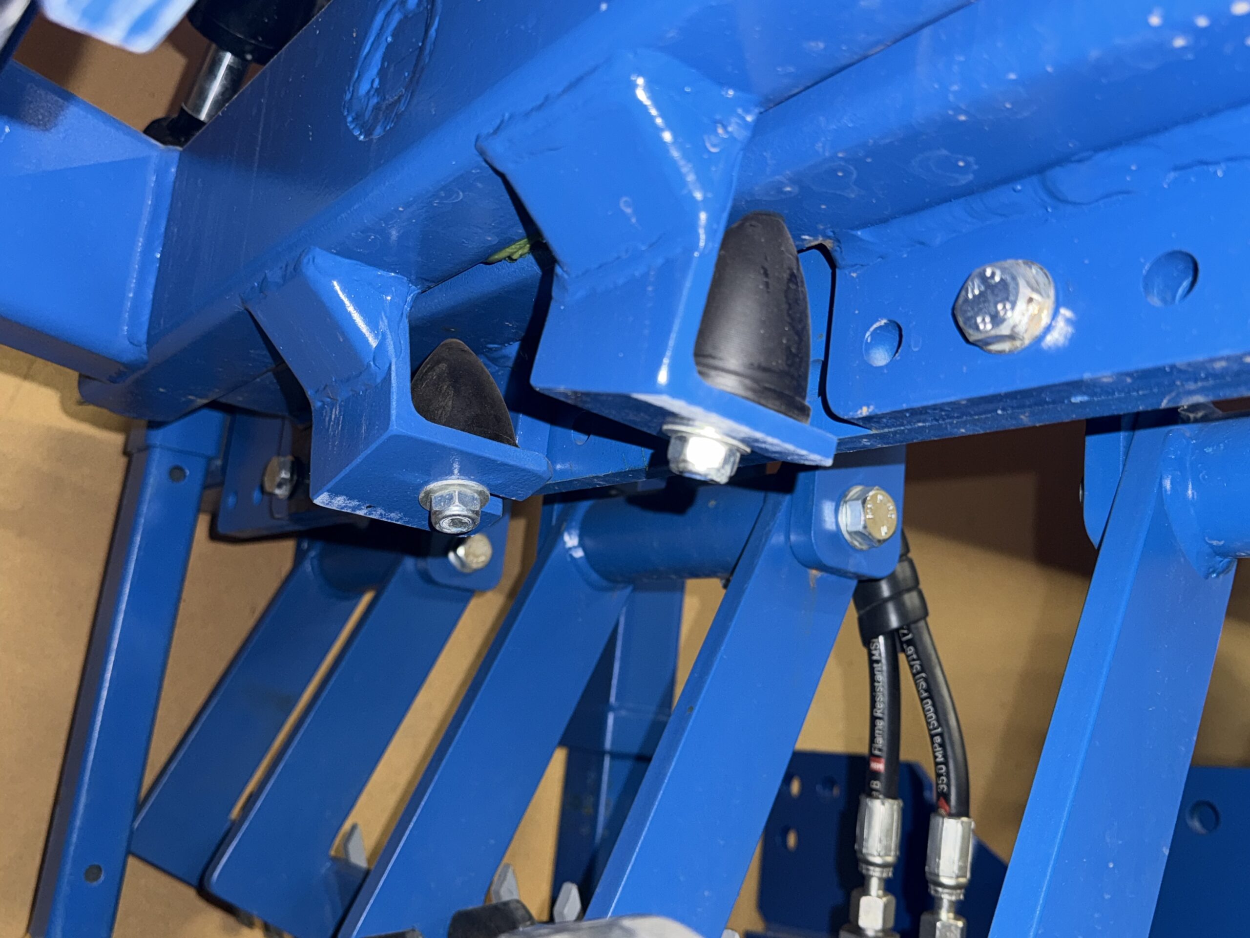 Die Arbeitstiefe lässt sich stufenlos über die Spindeln einstellen und somit optimal an die jeweiligen Einsatzbedingungen anpassen. Die Führungsschuhe sind drehbar gelagert und sitzen sehr nahe an den Kratzelementen, was eine ausgezeichnete Bodenanpassung auf jedem Gelände gewährleistet.