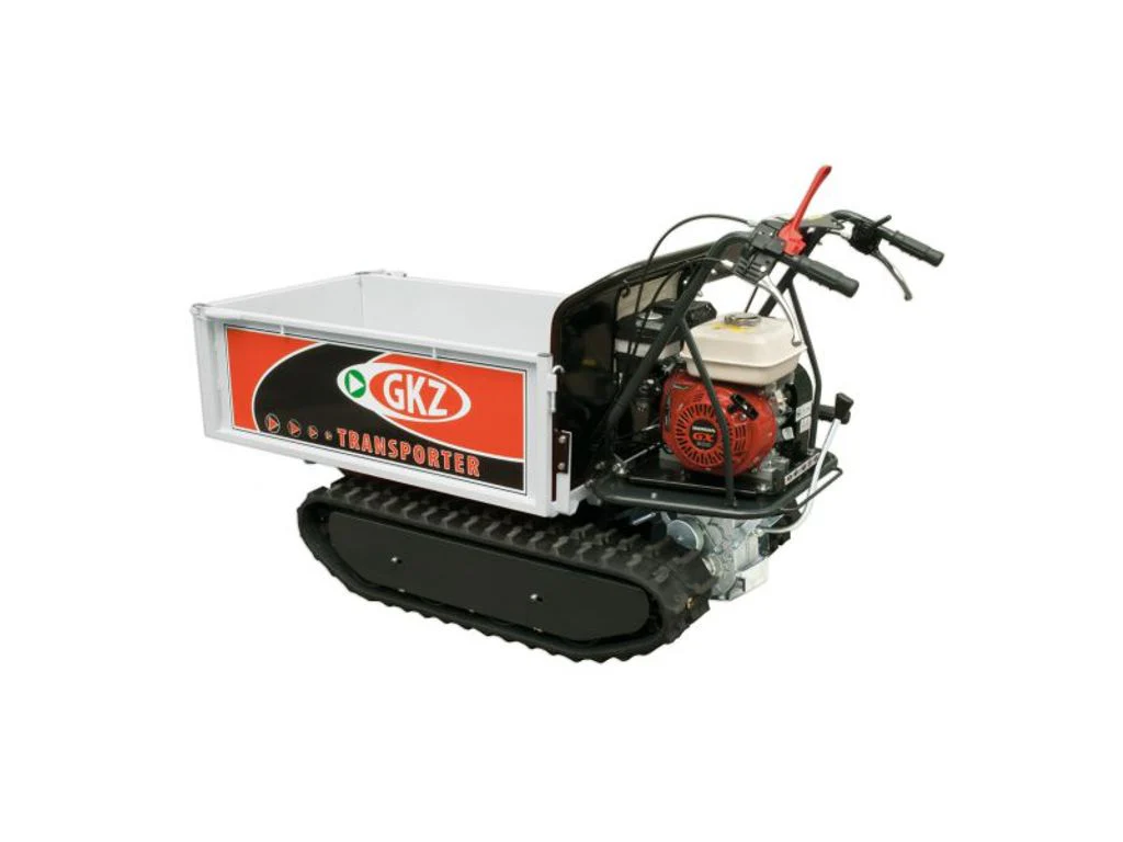Die GKZ Raupentransporter sind robust, zuverlässig und einfach zu bedienen. Sie tragen Lasten von 350 kg bis 650 kg und sind je nach Modell mit mechanischer oder hydraulischer Kippvorrichtung ausgestattet. Zudem verfügen die Transporter über drei Vorwärts- und einen Rückwärtsgang. Hier link